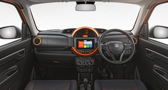 S-PRESSO has high seating layout that offers a commanding driving position. This also enables easy ingress and egress with ample leg room. The large cabin space with intense sporty black colour scheme accentuated by bright pop out accents brings excitement for young customer.