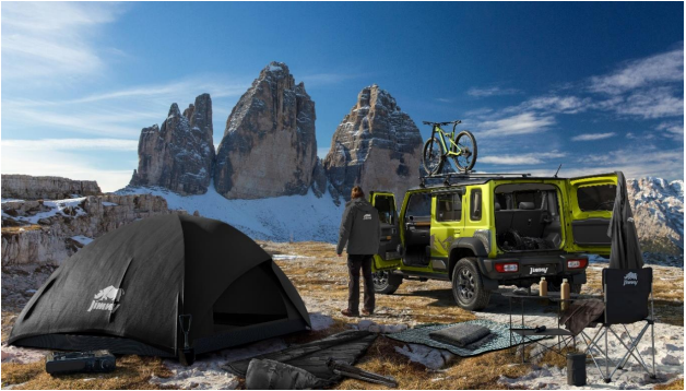 The Adventure Lifestyle collection is tailored to complement Jimny’s offbeat experiences. From premium expedition tents and weather-resistant sleeping bags to portable chairs, multipurpose knife and umbrellas, these accessories are meticulously designed to align with Jimny’s adventurous spirit. The trademark RHINO logo associated with the Jimny symbolizes rugged strength and dynamic power, that perfectly complement the legendary legacy of the Jimny.