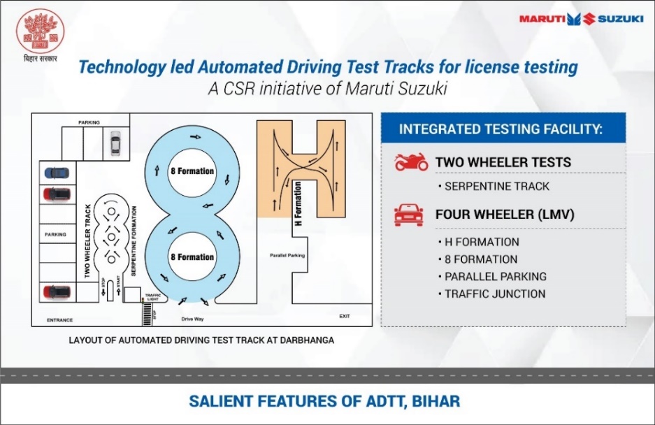 Mr. Rahul Bharti, Executive Officer, Corporate Affairs, Maruti Suzuki India Limited said, “Maruti Suzuki’s association with the Bihar government goes back to 2018 when we set up the state’s first Institute of Driving and Traffic Research (IDTR) to offer driver training in Aurangabad. Since then, we have inaugurated ADTTs at Aurangabad in 2020 and Patna in 2021. We thank the Government of Bihar for further entrusting us with this road safety project. Maruti Suzuki has been steadfast in its commitment to the 5 pillars of road safety - engineering, education, evaluation, enforcement, and emergency care. Automated driving license testing is a vital component of the ‘evaluation’ process. Equipped with high-definition cameras and an integrated IT system, ADTTs guarantee a comprehensive, efficient, and transparent testing process ensuring that only skilled drivers are awarded licenses.”